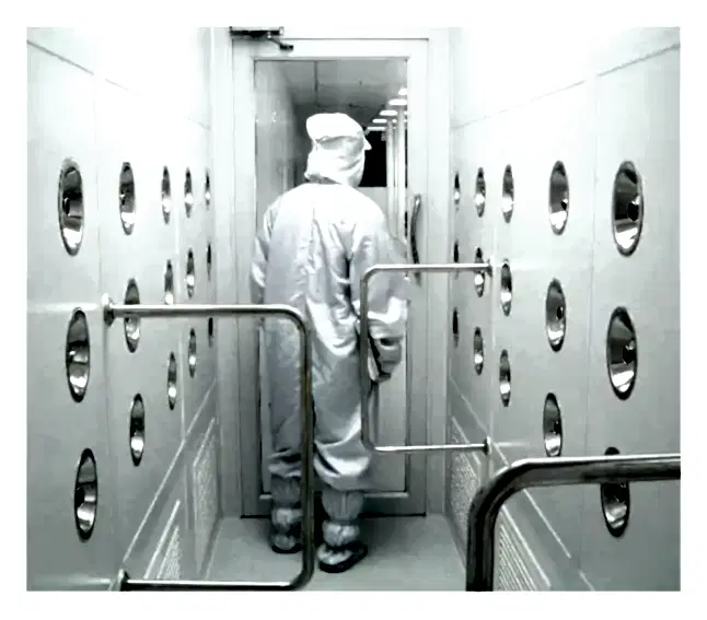 - Обдувочное оборудование используется для обработки относительно загрязненной, слабозапыленной формы, поэтому его применяют в цехах с условно чистым воздухом. На входе в рабочую зону или на выходе из цеха во вспомогательные помещения размещается обдувочная аппаратура, работа которой удаляет загрязнения на форме сотрудника. Установки расположены в виде узкого шлюза или тамбура для обеспыливания, в котором Пин-ап обдувается потоками чистого воздуха под давлением, а пыль отсасывается через щели в нижней части стен коридора.